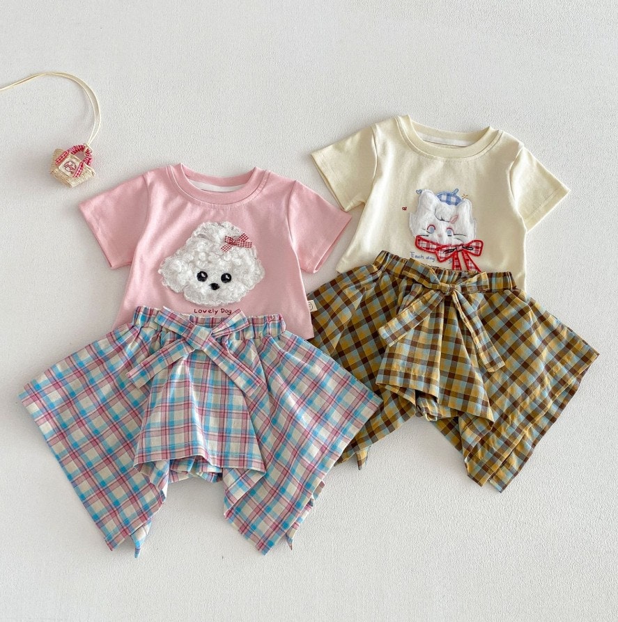 - [수입]체크치마바지셋